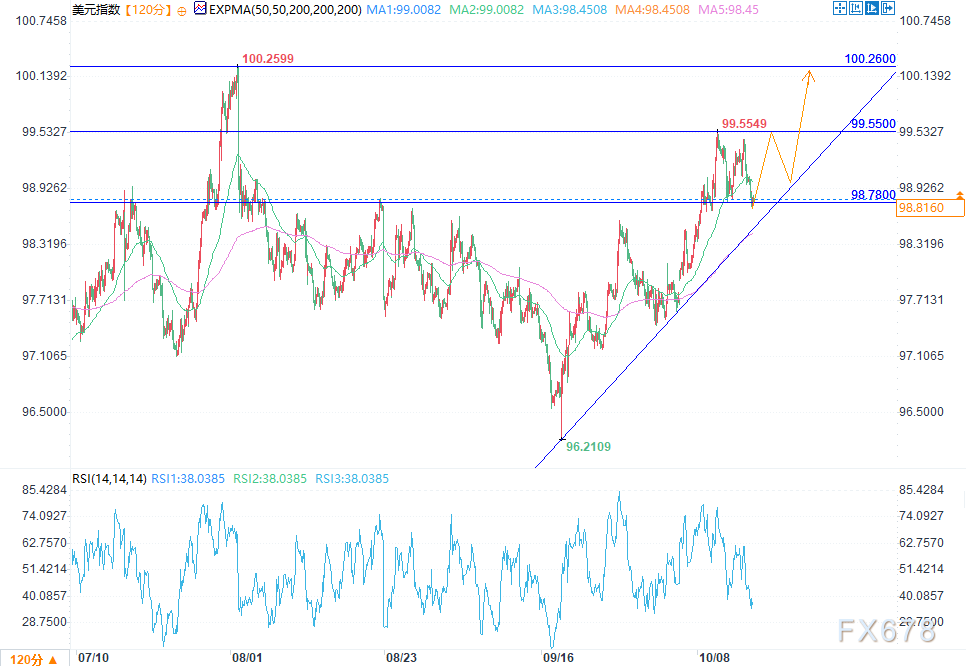 若多头守住98.70-98.40支撑区间,美元指数有望反弹至99.55,进而上探100.26。然而,若指数收盘跌破98.40,则可能预示进一步下行,下一看跌目标为98.03。当前相对强弱指数(RSI)处于38附近,说明当前空头占据主导,短期内指数或维持震荡整理,等待新的方向指引。