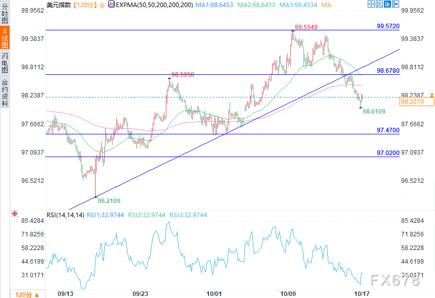 北京时间18:22,美元指数报98.2580/699,跌幅0.11%。