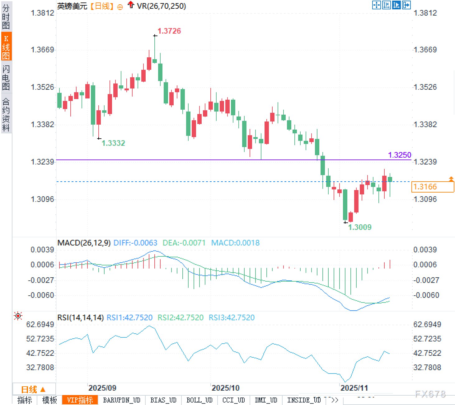 从技术图表上看,当前英镑兑美元汇价仍受制于1.3250的关键阻力位。汇价多次在该位置附近遇到抛盘压力,未能有效突破。若汇价成功突破这一阻力区间,可能会推动其进一步向1.33附近迈进。然而,从当前的走势来看,突破的可能性较小,且短期内英镑的涨幅仍受限。