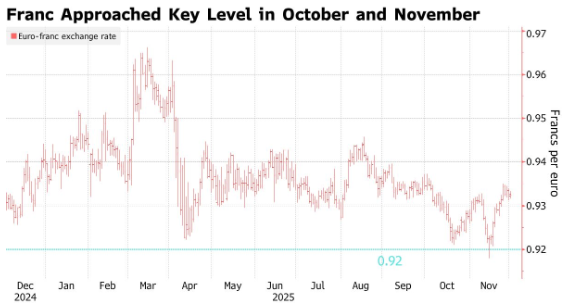 Germanier补充道,瑞士央行或许在11月也曾介入市场,以应对因瑞士与美国达成贸易协议而导致的瑞郎汇率达到十年来最高水平的情况。他说,11月中旬瑞士货币市场的波动情况——当时瑞郎升至自2015年1月瑞士央行取消汇率上限以来的最高水平——可能就表明了这一点。