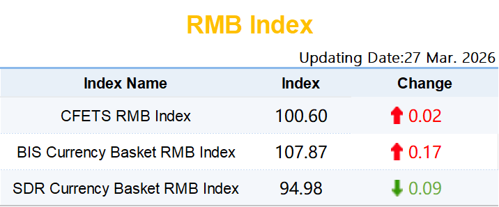 新版人民币汇率指数已于2026年1月1日起生效,详情参见《关于调整CFETS人民币汇率指数、BIS货币篮子人民币汇率指数货币篮子和权重的公告》。